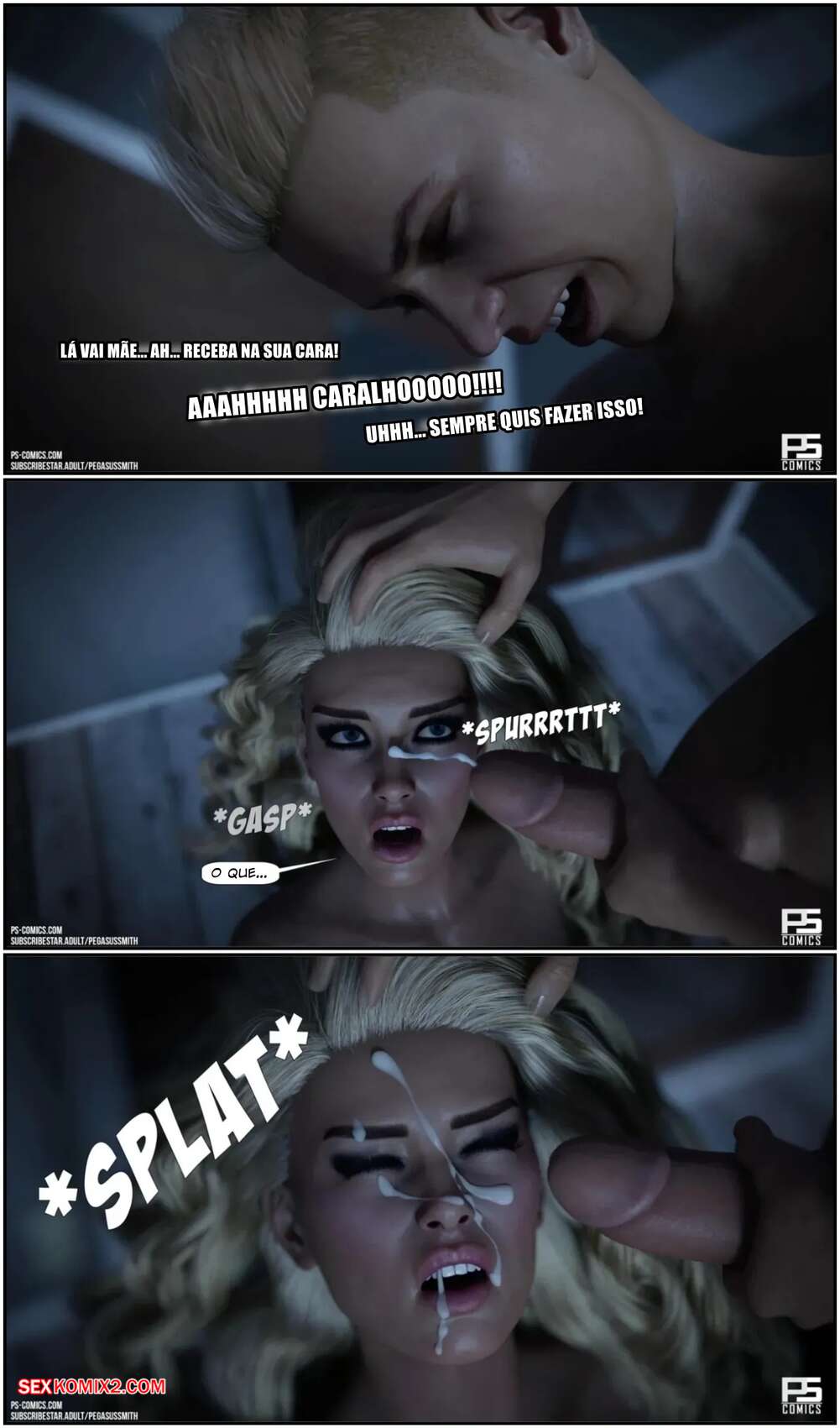 Obrigado por assistir a este quadrinho pornô. Se você gostou dele, clique em "compartilhar" para não perdê-lo.