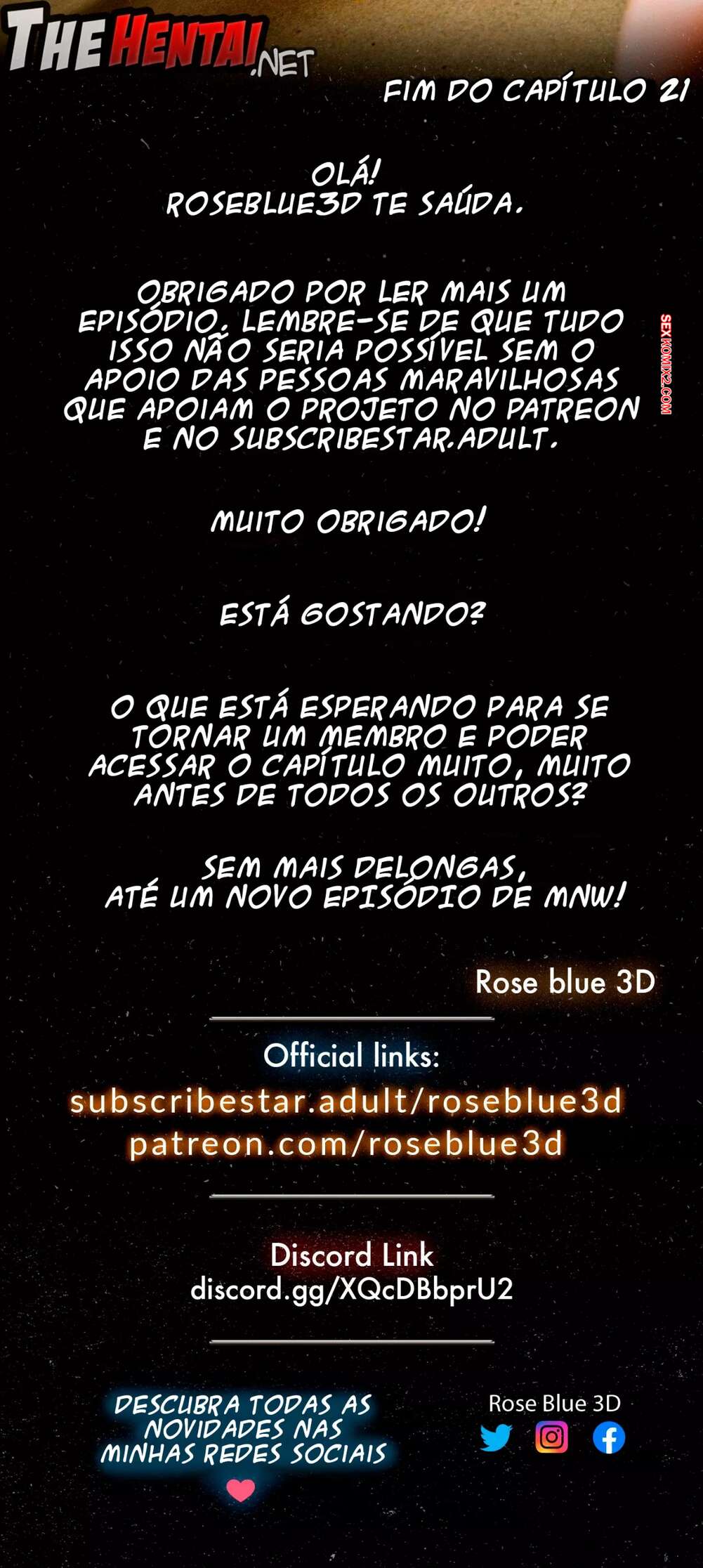 Obrigado por assistir a este quadrinho pornô. Se você gostou dele, clique em "compartilhar" para não perdê-lo.